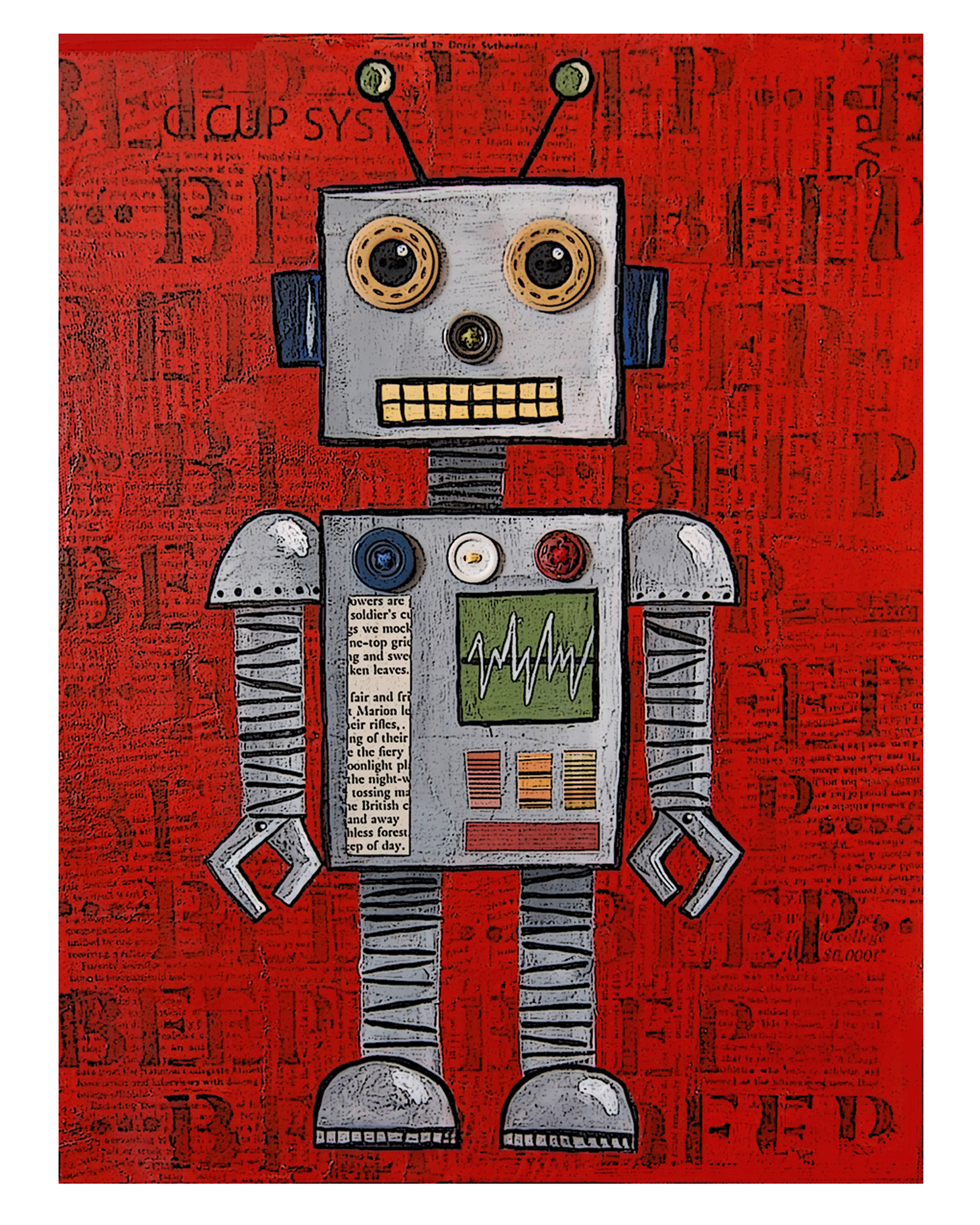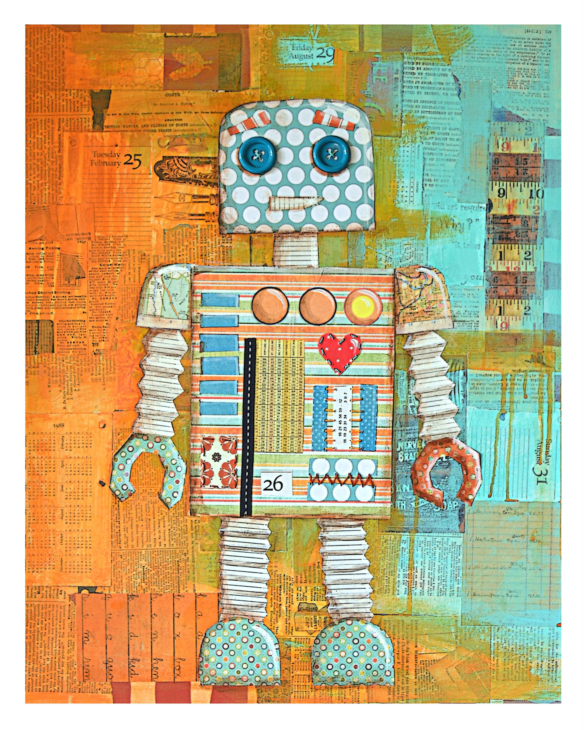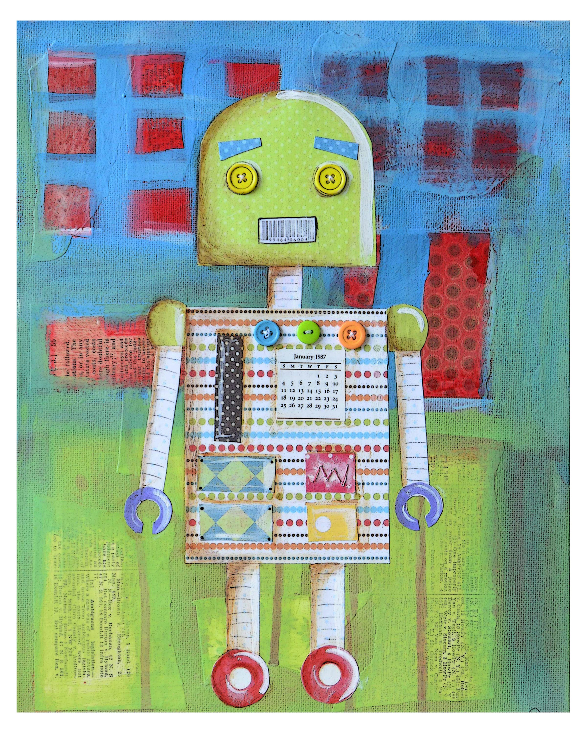 Mixed media paintings of robots. Prints can be found at gallerydirect.com
